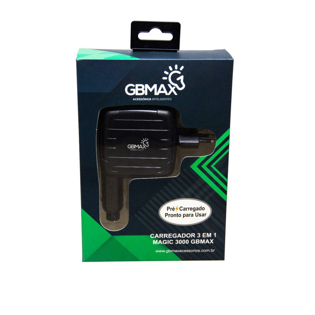 Carregador 3 em 1: Veicular, Parede e Power Bank Magic 3000 Gbmax