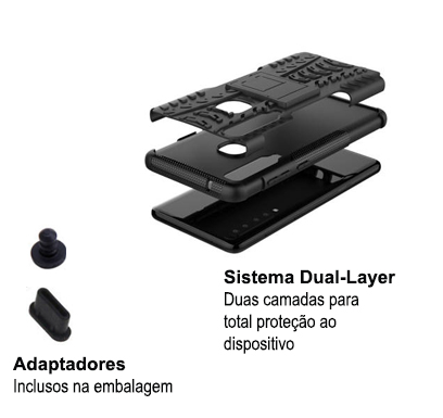- Capa robustecida protetora, própria para o smartphone com proteção lateral e traseira em TPU Poliuretano e Policarbonato;